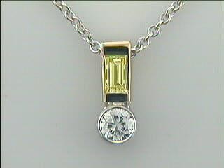 LADIES PENDANT 14K w/0.34ct G/SI2 DIAMOND + 0.27CT FANCY YELLOW BAGUETTE
